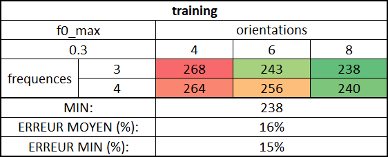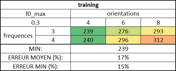 Tests de l'influence de différents paramètres du modèle sur le taux de bonne classification |